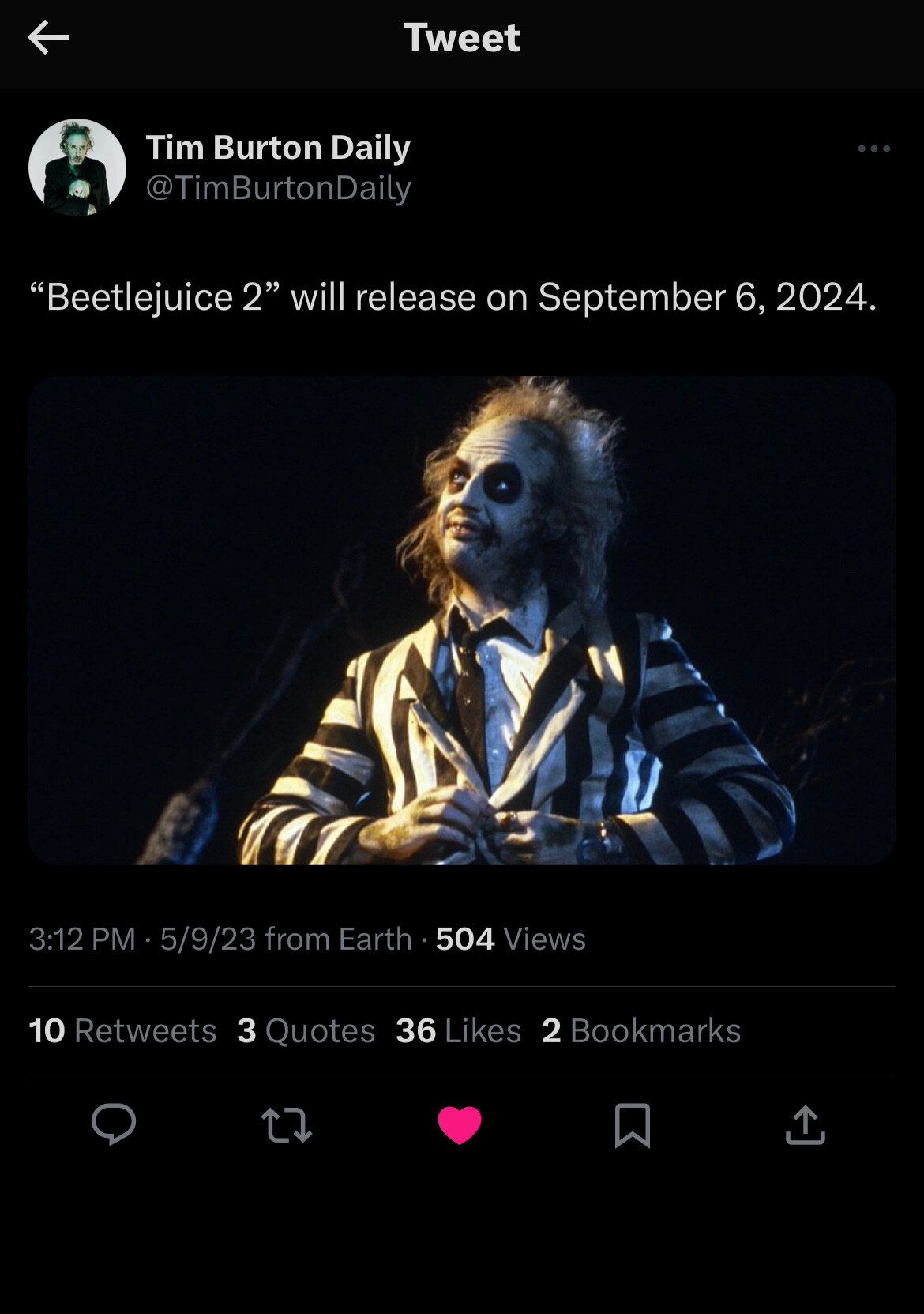 Tim Burton sent this tweet!